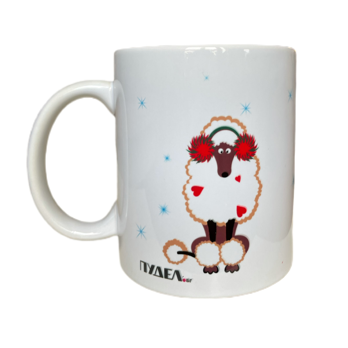 Коледна чаша – бели пудели